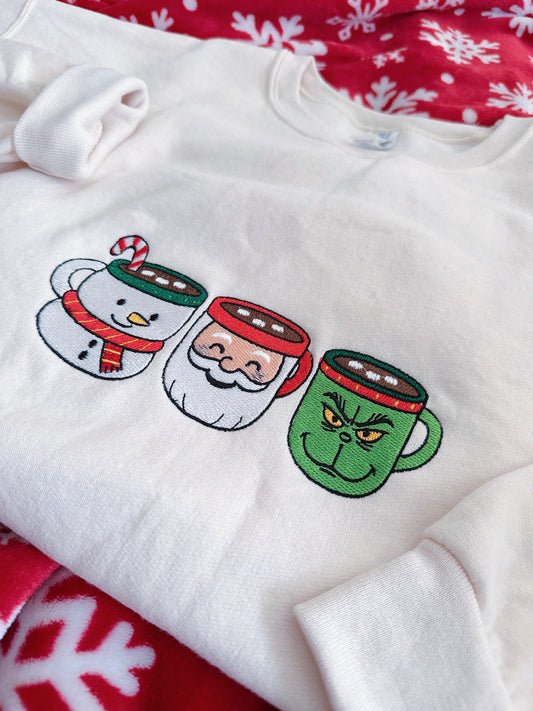 Cocoa & Candy Cane Embroidered Crewneck